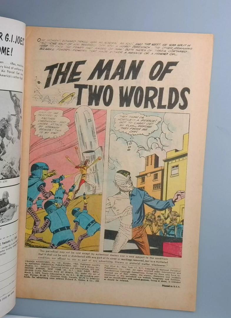 Keywords: Strange Adventures DC Comics Silver Age comic book sci-fi dimensional travel alien landscape vintage comics The Man of Two Worlds 1965