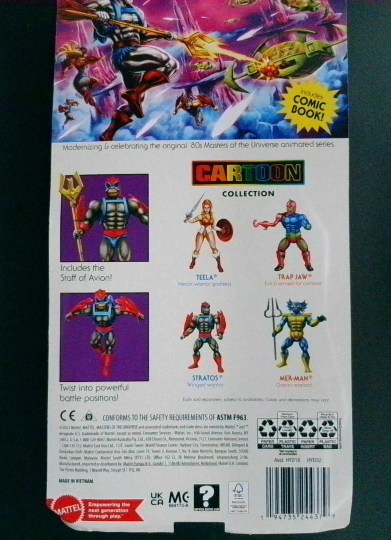 Keywords: Stratos He-Man Masters of the Universe Cartoon Collection Mattel action figure collectible winged warrior articulated figure staff of Avion