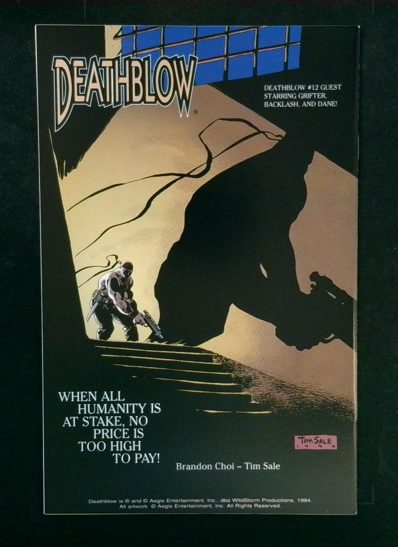 Team 7 #1 (Image Comics) kicks off Chuck Dixon’s gritty WildStorm military saga, following an elite black‑ops unit through betrayals, covert experiments, and escalating violence that shape characters later central to the WildStorm universe. Art by Aron Wiesenfeld and Trevor Scott delivers detailed, kinetic visuals and the dramatic front cover showcases heavy firepower and soldiers in combat. Back cover features a Deathblow promo piece by Tim Sale.