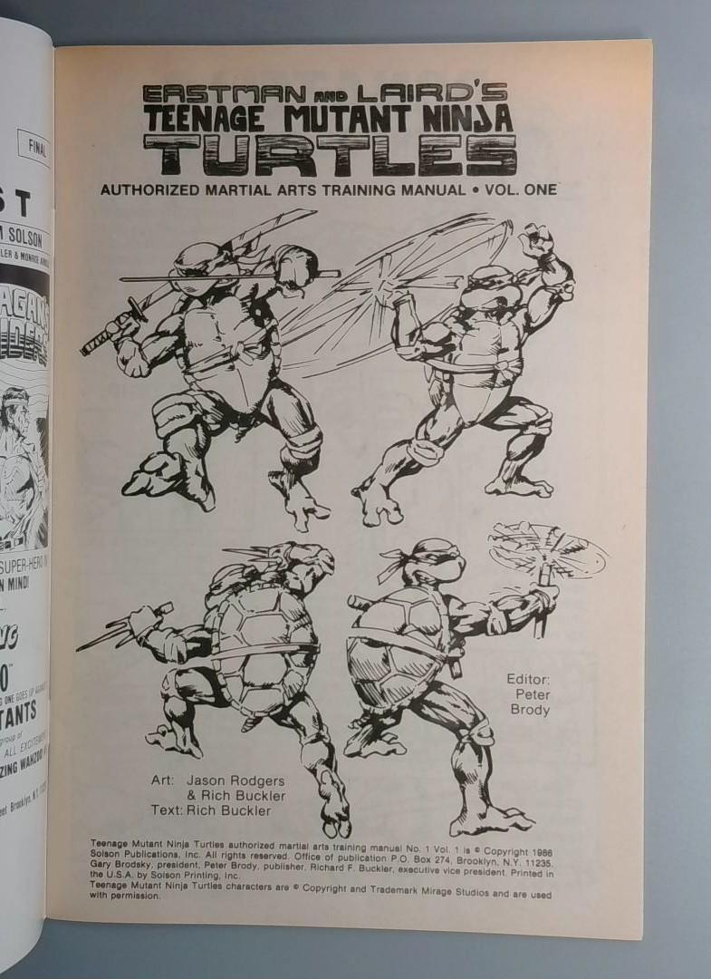 Teenage Mutant Ninja Turtles Authorized Martial Arts Training Manual #1 - Published by Solson Publications in 1988, this is an official martial arts training guide featuring the beloved Teenage Mutant Ninja Turtles characters created by Eastman and Laird.