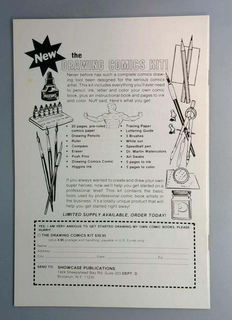 A notable collectible from the height of TMNT's popularity in the late 1980s, this training manual represents a cross-media merchandising effort that brought the franchise beyond comics into instructional and educational territory. The inclusion of a Drawing Comics Kit advertisement on the back pages further demonstrates the era's commitment to engaging young fans in creative pursuits.