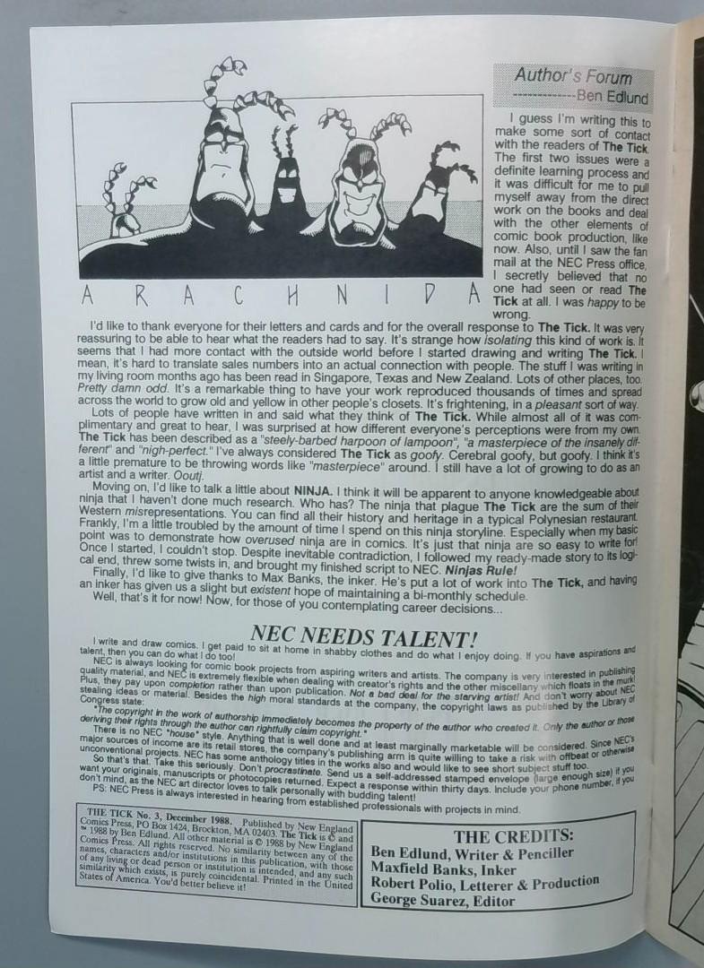 Keywords: The Tick comic book New England Comics 1988 Ben Edlund superhero vintage comics cult following comic collection blue giant