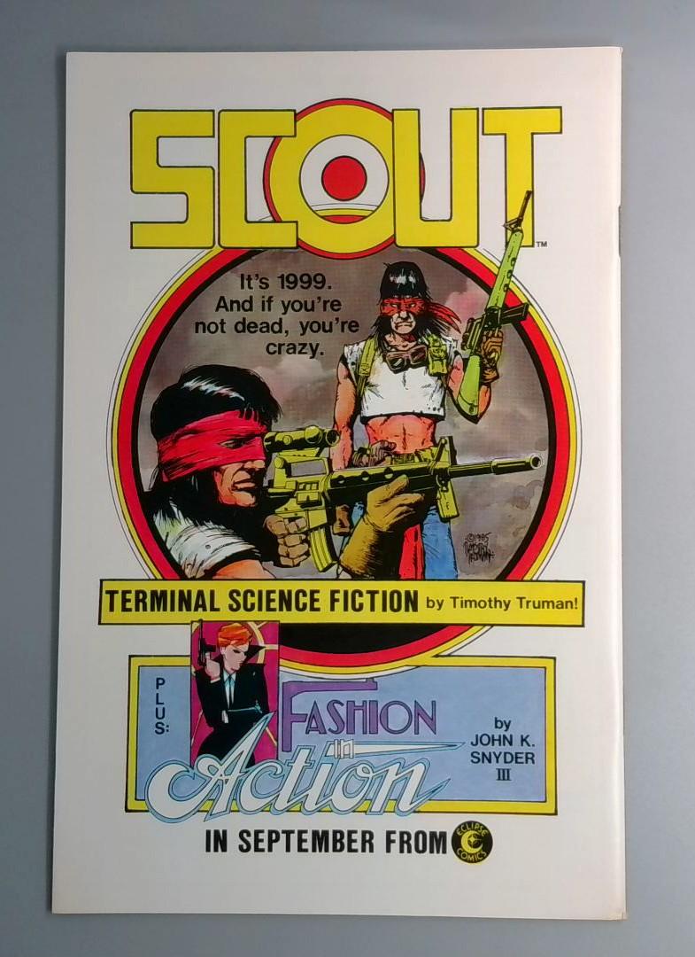 Scout #1 - Published by Eclipse Comics in 1999, this debut issue kicks off a new series with "Terminal Science Fiction" by Timothy Truman and a backup story "Fashion Victim" by John K Snyder III.