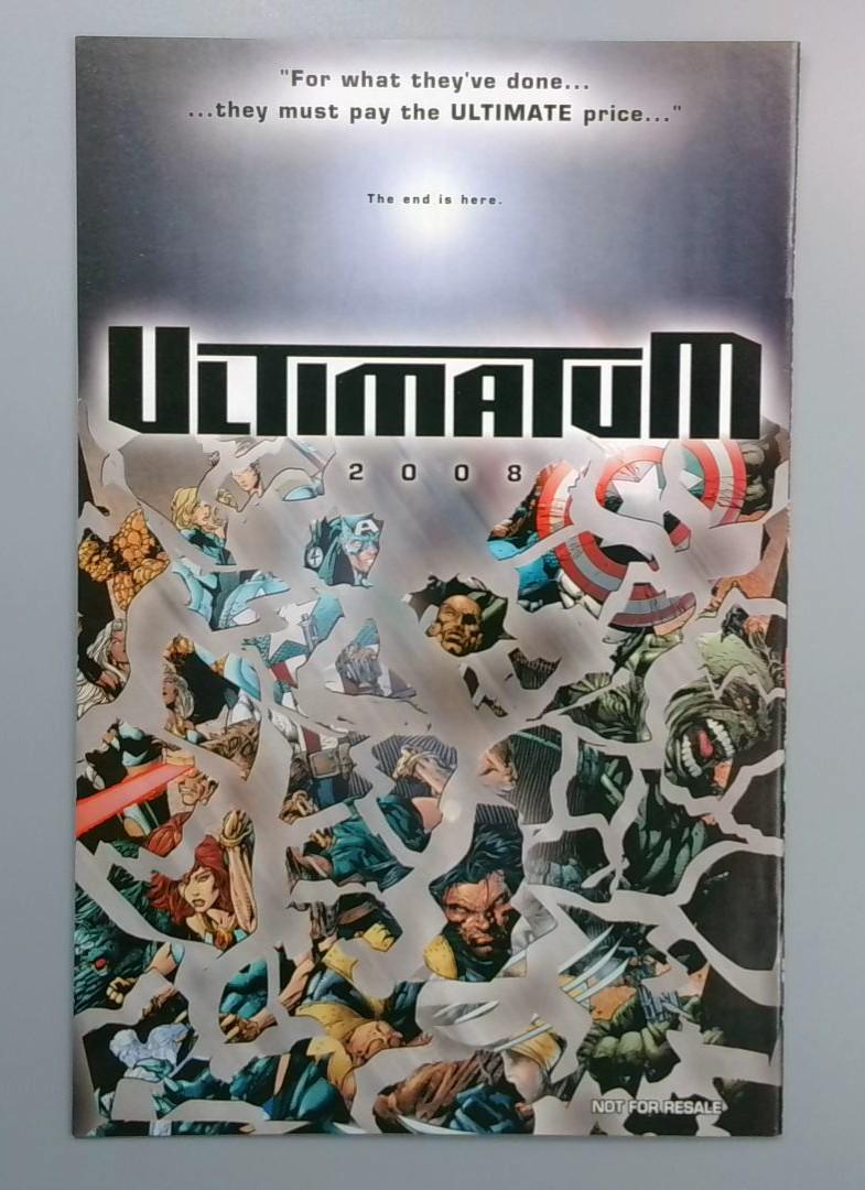 Ultimate Marvel 2008 concludes the Ultimate Universe storyline, featuring a dramatic gathering of Marvel's most iconic heroes facing a cataclysmic event. The cover showcases key characters like Captain America, Wolverine, and the Fantastic Four in a intense, action-packed composition. This finale promises high stakes and potential major changes to the Ultimate Marvel continuity, with the tagline "For what they've done... they must pay the ULTIMATE price..."