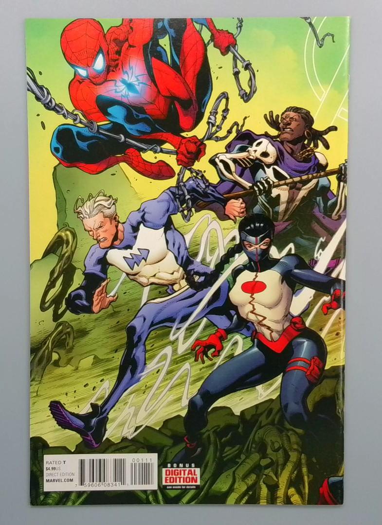 The Uncanny Avengers #1 from 2015 features a dynamic team lineup including Deadpool, Rogue, and a fiery character in the background. This issue, written by Gerry Duggan and illustrated by Ryan Stegman, appears to showcase a high-energy team battle with multiple Marvel heroes. The cover art highlights the team's intense action and diverse powers, with a vibrant color palette that captures the excitement of the storyline. The comic represents a key moment in the Avengers team's continuity during the 2015 Marvel publishing period.