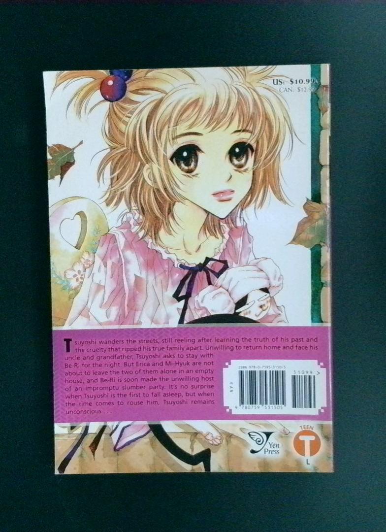 This volume follows Tsuyoshi as he wanders the streets, still grappling with the truth of his past and the family tragedy that tore his life apart. Unwilling to return home and face his uncle and grandfather, Tsuyoshi seeks refuge with his friend's family. When an impromptu slumber party brings the group together, Tsuyoshi finds himself the reluctant host, and the dynamics between the characters—particularly with Erica and Mi-Hyuk—create an emotionally charged narrative as Tsuyoshi struggles to remain conscious and present.