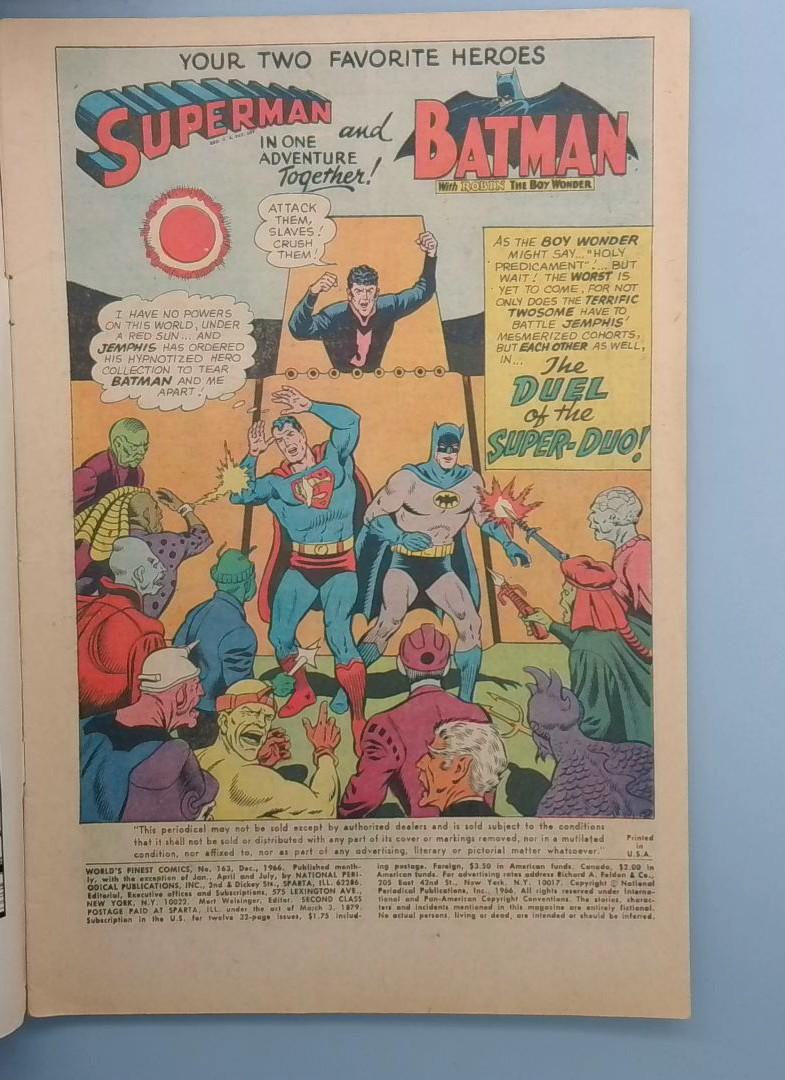 WORLD'S FINEST COMICS #163 - A Silver issue from DC published December 1966.