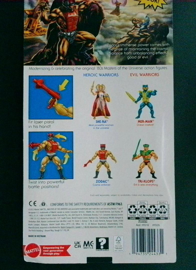 Keywords: Zodac Cosmic Enforcer Masters of the Universe Mattel action figure Retro Play 1980s design collectible mint condition sealed packaging