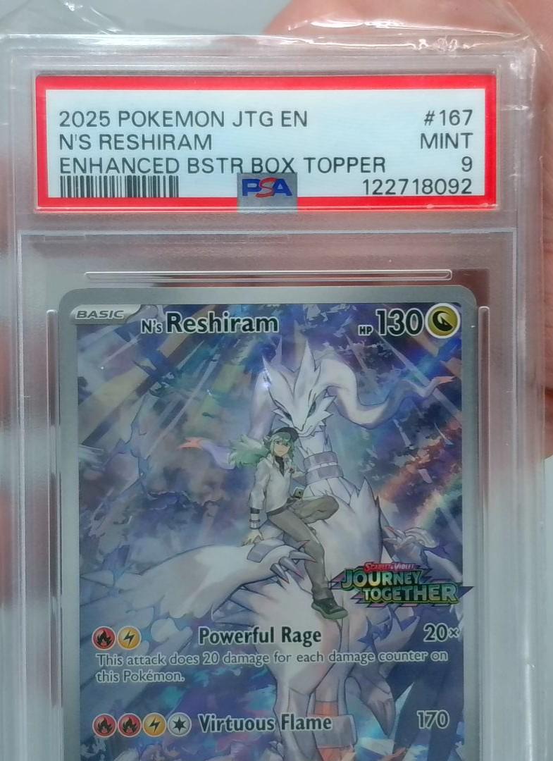 Keywords: Pokémon Reshiram trading card PSA Mint 9 Journey Together Enhanced BSTR Box Topper Pokémon card 2025 full art collectible