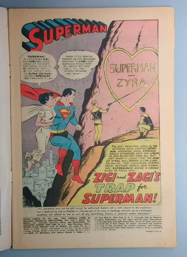 Action Comics #316 VG+ 1st Appearance Zigi and Zagi DC 1964 BW1
