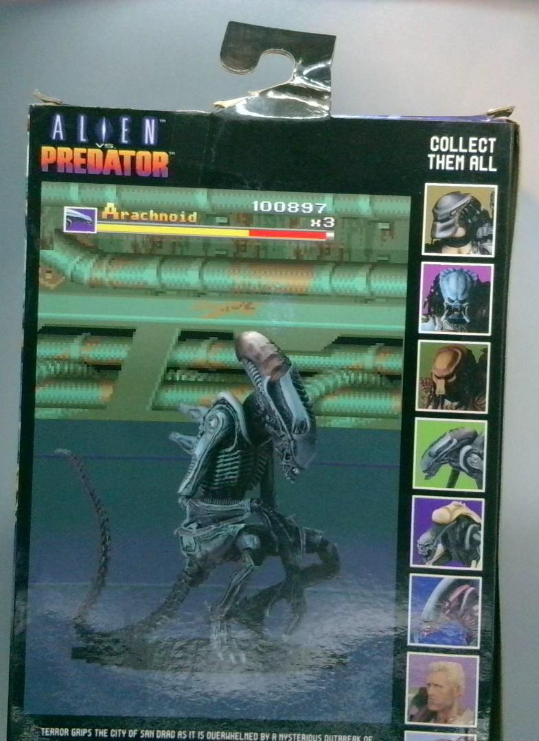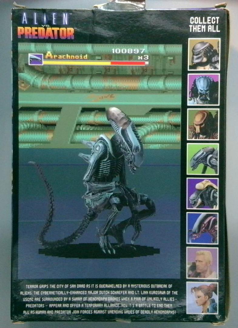 Keywords: Arachnoid Alien Alien vs Predator NECA action figure collectible biomechanical sculpting articulated limbs display base metallic accents factory-sealed