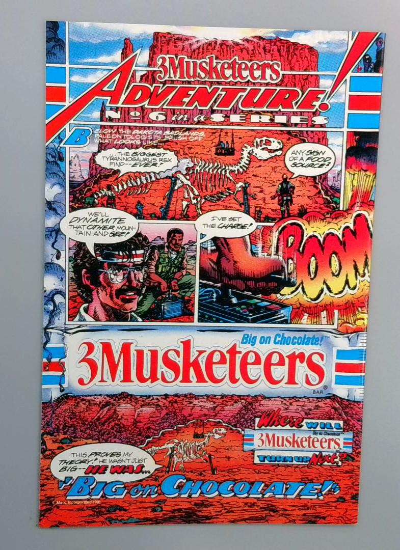 Batman #470 (Oct 1991) is a War of the Gods tie‑in that pits Batman and Robin against mythic, Olympian forces as supernatural stakes invade Gotham. The dramatic cover art by Grant Breyfogle shows a godlike figure holding aloft a chalice while Batman and Robin lie defeated at his feet, underscoring the story’s mythic tone. Back cover features a full‑page 3 Musketeers promotional strip.