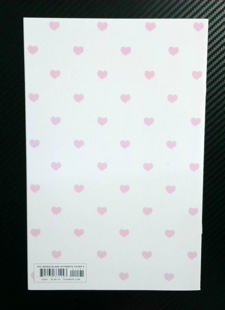 This issue launches a new series dedicated to the cultural icon Bettie Page, featuring the distinctive pink heart motif that adorns the cover. The blank variant cover shown in these images provides a clean canvas, ideal for collectors or those looking to customize their copy.