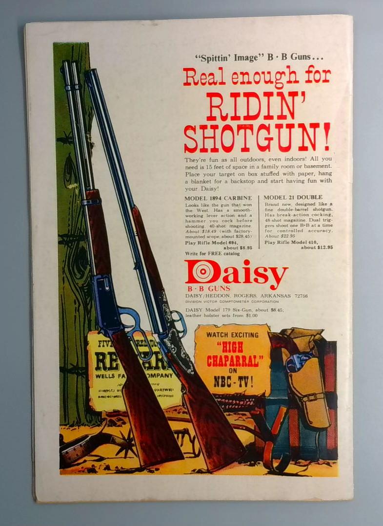 This issue showcases a striking cover featuring Bomba perched atop a massive green sphere held by a giant gorilla, with dynamic action and vivid color work typical of DC's jungle adventure titles. The interior story opens with a tale of a gleaming city and its evil counterpart, exploring themes of experimentation and nature's retaliation against those who would challenge its power. The comic includes period advertisements, including a full-page Daisy B-B Guns ad promoting toy rifles and shotguns to young readers, reflecting the marketing practices of late 1960s comics.