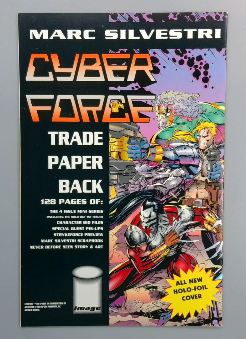 Keywords: Cyber Force comic book trade paperback holo-foil cover Marc Silvestri Image Comics sci-fi superhero cyborg warriors 1990s comics dystopian setting