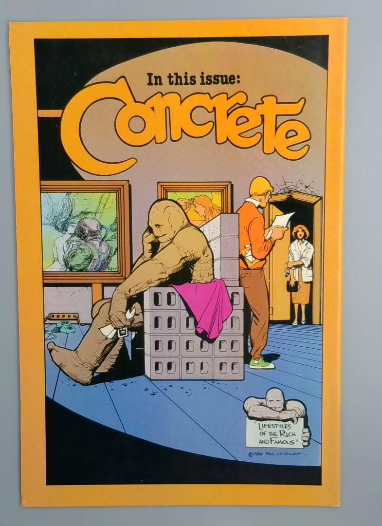 Dark Horse Presents #1 features the debut of Black Cross, a gritty action comic about a muscular warrior battling through a hostile environment marked by barbed wire and scattered skulls. The protagonist is heavily armed and appears to be fighting in a post-apocalyptic or war-torn setting, wielding an assault rifle and standing amid destruction. The striking yellow background and detailed artwork highlight the intense, violent nature of the story. This issue also includes a backup story called "Concrete", a slice-of-life comic about a strange, muscular character interacting in what seems to be an art gallery or studio, with the subtitle "Lifestyles of the Rich and Famous" adding an ironic touch to the narrative.