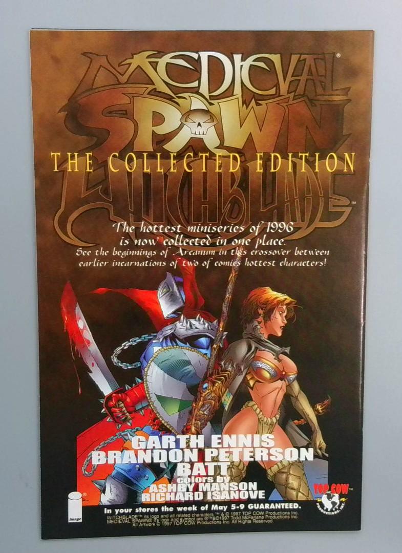 The Darkness #5 (Top Cow/Image) continues the supernatural noir of Jackie Estacado as he grapples with the ancient, demonic power known as the Darkness amid crime and occult threats. Notable for its dark, dynamic Top Cow art and a menacing creature-driven cover. Back cover features an ad for the Medieval Spawn collected edition.