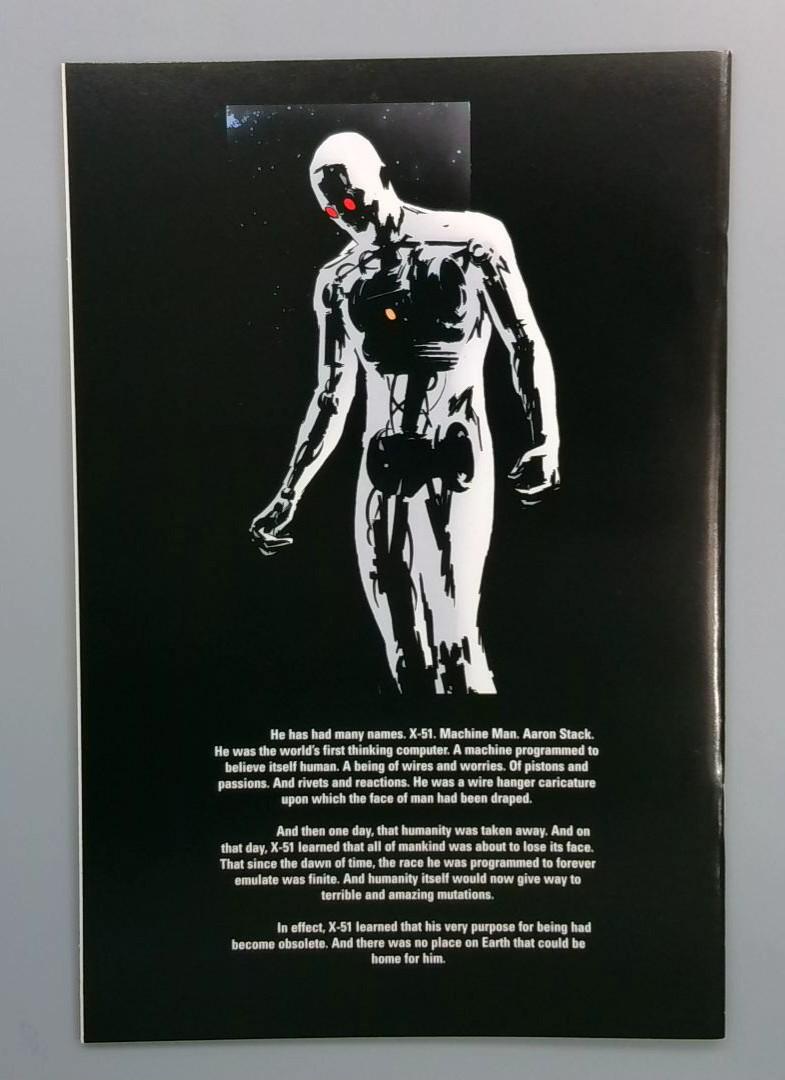 Marvel's Earth X #0 explores the dystopian future of the Marvel Universe, focusing on the character X-51 (Machine Man), a machine thinking it's human. The comic delves into themes of humanity, artificial intelligence, and existential purpose, presenting a bleak narrative about mankind's potential fate. The story follows X-51's journey of self-discovery and understanding his role in a world where humanity faces profound transformation and potential extinction. The issue sets up a complex, philosophical exploration of what it means to be human in a rapidly changing world.
