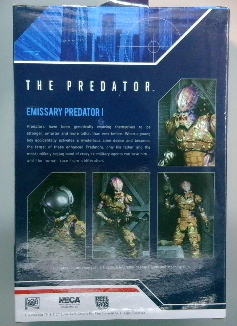 Emissary Predator I Ultimate Action Figure by NECA features exceptional detail with interchangeable heads and hands, a machine gun accessory, and articulated joints for dynamic posing. The figure displays excellent paint applications with metallic and weathered finishes on the armor, dreadlocks, and biomechanical details. All included accessories appear present and intact in the original packaging. Figure is in mint condition, never removed from box.