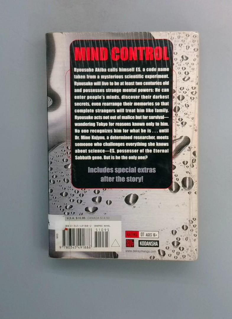 Ryousuke Akiba calls himself ES, a code name taken from a mysterious scientific experiment. Possessing the ability to live for at least two centuries and wielding strange mental powers, ES can enter people's minds, discover their darkest secrets, and even rearrange their memories so that complete strangers treat him like family. Acting not out of malice but for survival, ES wanders Tokyo for reasons known only to himself—until he meets Dr. Mine Kujyou, a determined researcher who challenges everything she knows about science. As their paths cross, the question remains: is ES truly the only one like himself? This volume includes special extras after the story.