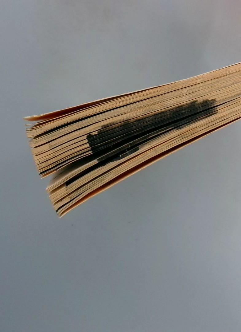 Black marker marks on top of book, see photo.