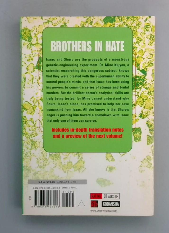 Isaac and Shuro are the products of a monstrous genetic-engineering experiment. Dr. Mine Kujyou, a scientist researching this dangerous subject, knows that they were created with the superhuman ability to control people's minds, and that Isaac has been using his powers to commit a series of strange and brutal murders. But the brilliant doctor's analytical skills are truly being tested, for Mine cannot understand why Shuro, Isaac's clone, has promised to help her save humankind from Isaac. All she knows is that Shuro's anger is pushing him toward a showdown with Isaac that only one of them can survive.
