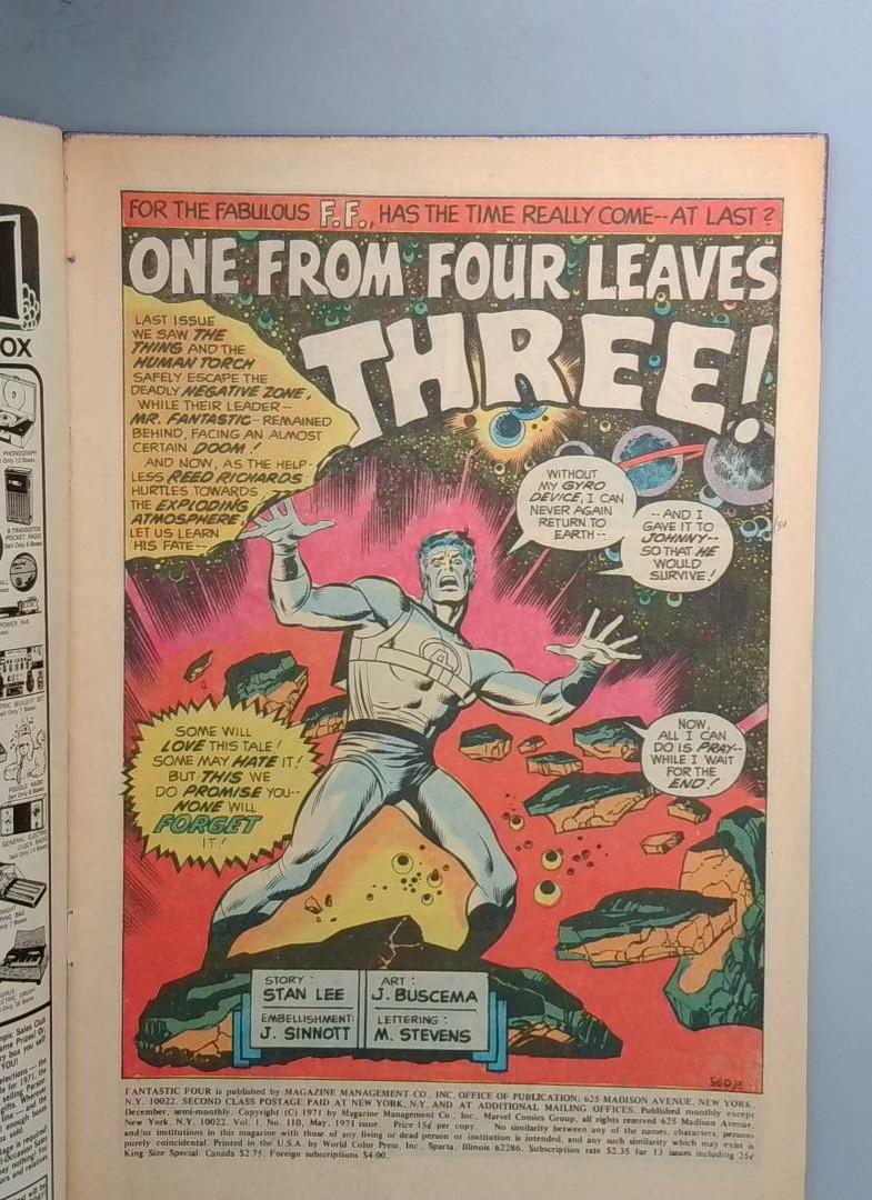 THE FANTASTIC FOUR #110 - A Bronze issue from Marvel published May 1971.