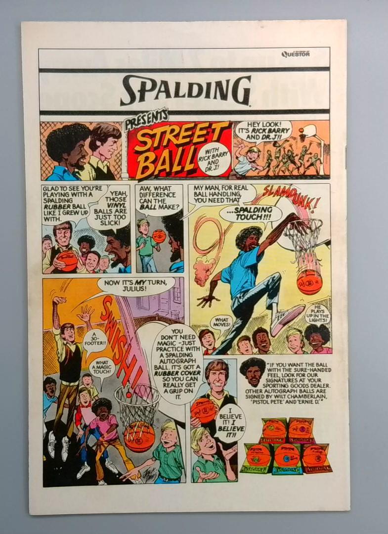 The back matter includes a Spalding Street Ball advertisement featuring a fun, interactive comic panel promoting autographed basketballs with signatures from notable athletes of the era, adding to the vintage appeal of this classic Bronze Age comic.