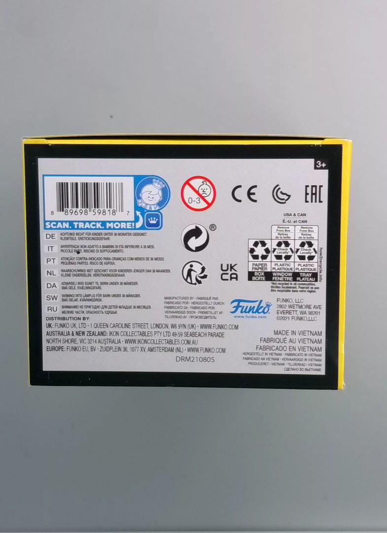 Funko Pop! Vinyl figure of Dustin from Netflix's Stranger Things, featuring a colorful design with a yellow body, Camp Know Where hat, and vibrant green and orange outfit. This Target exclusive (No. 828) showcases the character in a playful, stylized pose with a bright, eye-catching color palette. The figure comes in its original packaging, which appears to be in pristine condition with no visible damage. A must-have collectible for fans of the series and Funko Pop collectors.