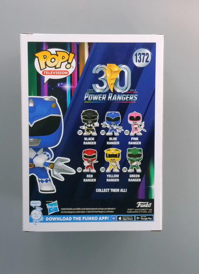 This is actually a Funko Pop! vinyl figure of the Blue Ranger from the Power Rangers series, commemorating the franchise's 30th anniversary (1993-2023). The figure is part of a collectible set featuring all six original Rangers in their iconic color-coded suits. Funko Pop! #1372 captures the Blue Ranger's distinctive blue and white costume with a stylized, chibi-like design typical of the Funko Pop! aesthetic. The packaging highlights the 30-year milestone of the Power Rangers franchise and includes a collect-them-all display of the different Ranger figures.