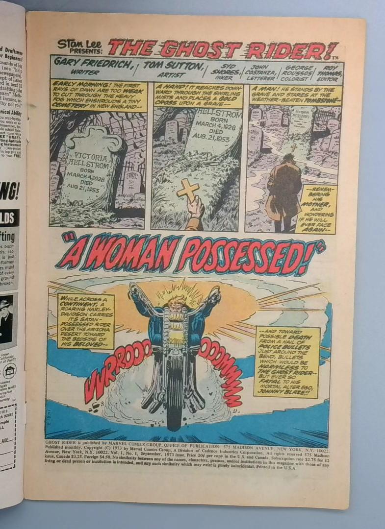 Keywords: Ghost Rider Marvel Comics 1973 comic book superhero supernatural first issue vintage comics collectible Gary Friedrich