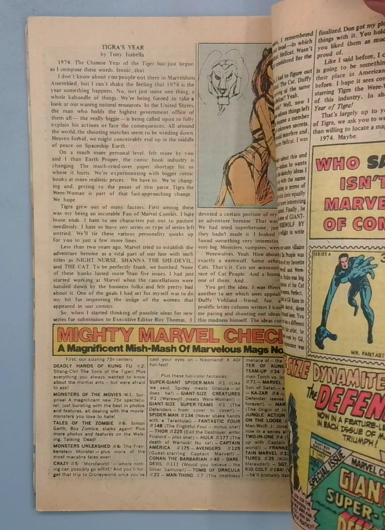 Keywords: GIANT-SIZE CREATURES Tigra Greer Grant Marvel Bronze Age comic book 1st appearance collectible value stamp Mr. Fantastic