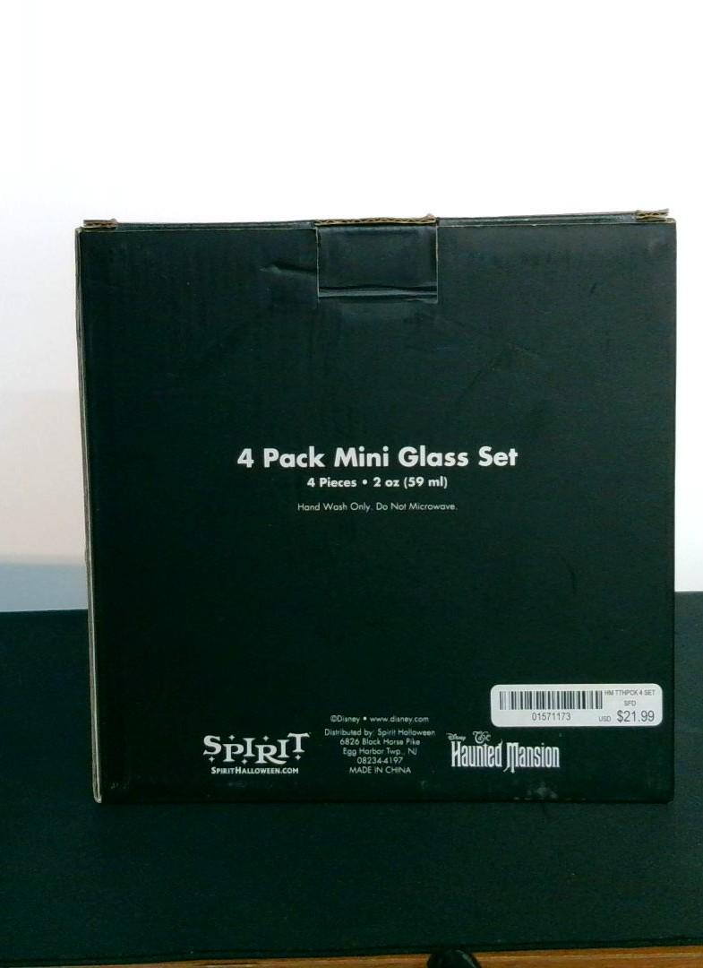 Keywords: Haunted Mansion mini glass set Spirit Halloween 2 oz glasses themed designs collectible glassware Halloween decor vintage style hand wash only party supplies