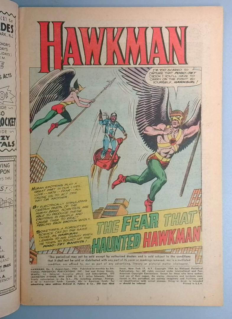 HAWKMAN #3 - A Silver issue from DC published September 1964.