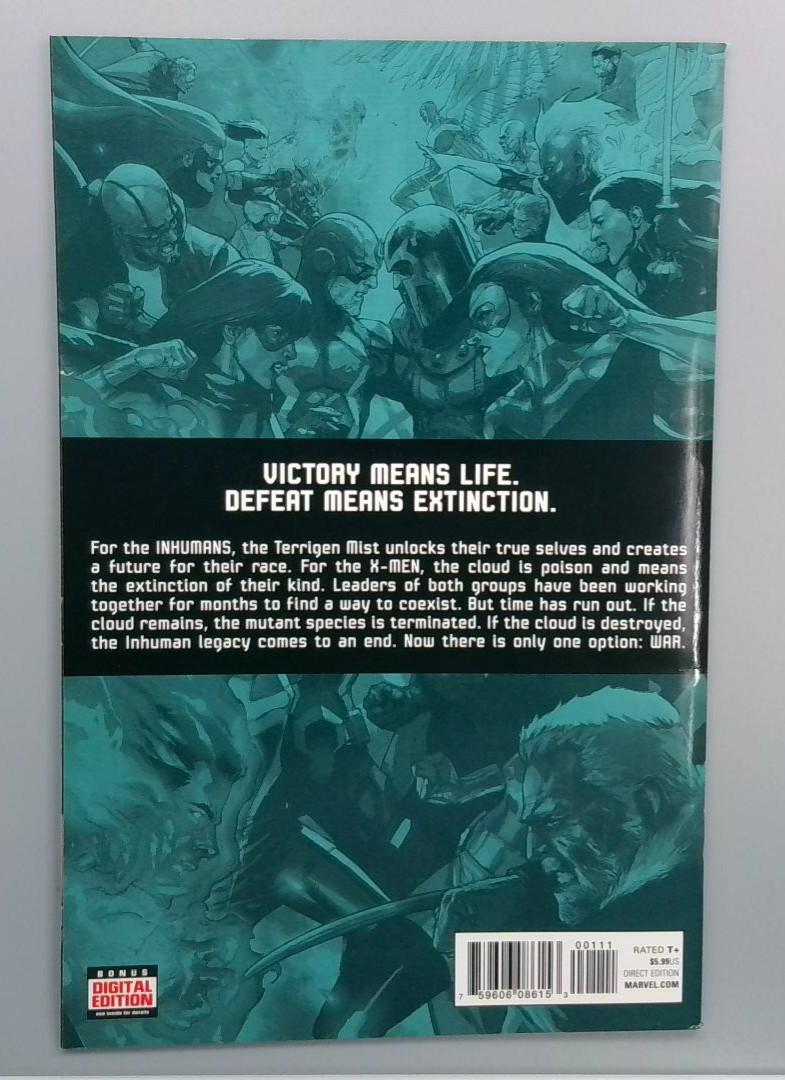 Event kickoff that pits the Inhumans against the X‑Men over the Terrigen Cloud — a mist that grants Inhumans their power but threatens mutant survival — forcing leaders into all‑out war. Issue #1 sets the stage with intense confrontations between Inhuman royalty and mutant leaders and establishes the moral stakes and fallout for both species. Creative credits on the cover: Soule, Lemire, Yu, Alanguilan, Curiel.
