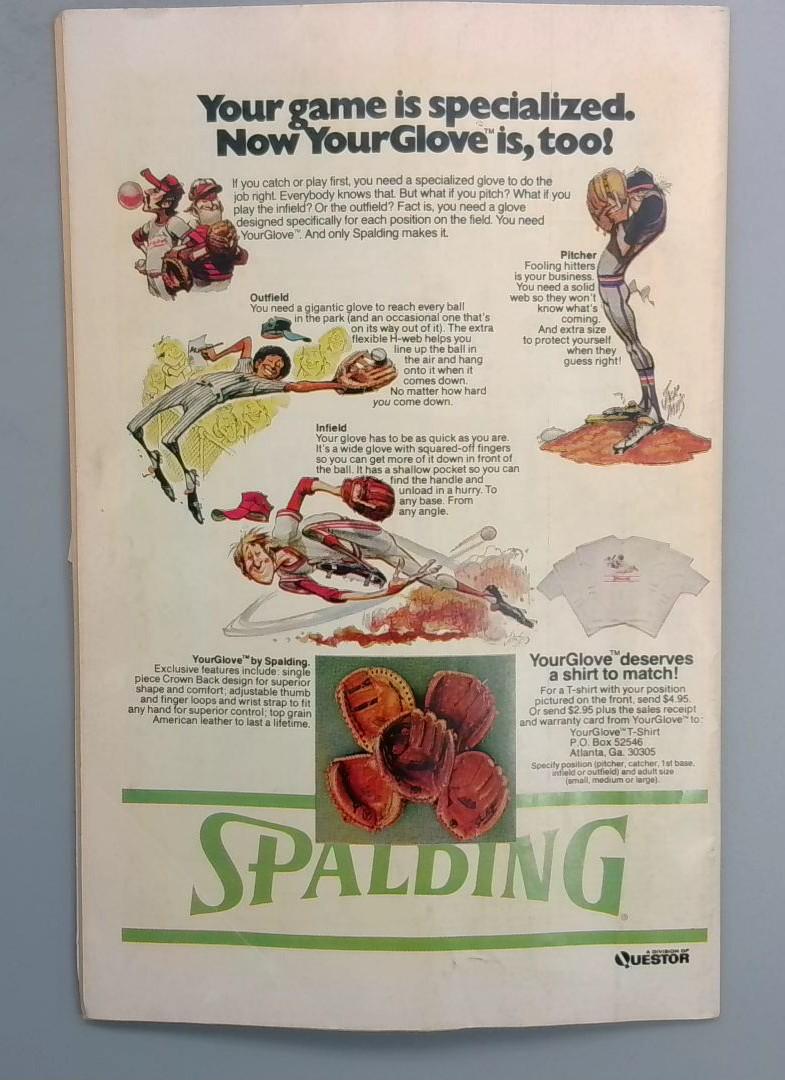 This issue presents an action-packed adventure with The Thing battling against the Liberty Legion, a Golden Age superhero team. The cover prominently features The Thing in the foreground alongside Master Man, U-Man, and the villain Skyshark. The story involves these classic characters in what promises to be an exciting confrontation, with the teaser "Master Man! U-Man! and the Masked Killer Called Skyshark!" The comic also contains vintage advertisements, including a notable Spalding baseball glove ad and various mail-order coupon promotions typical of the era.