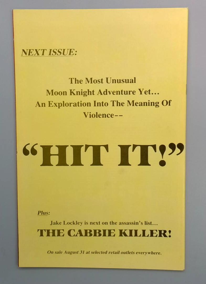 Keywords: Moon Knight Marvel Comics comic book special issue 1982 dark adventure violence theme Jake Lockley Cabbie Killer graphic novel