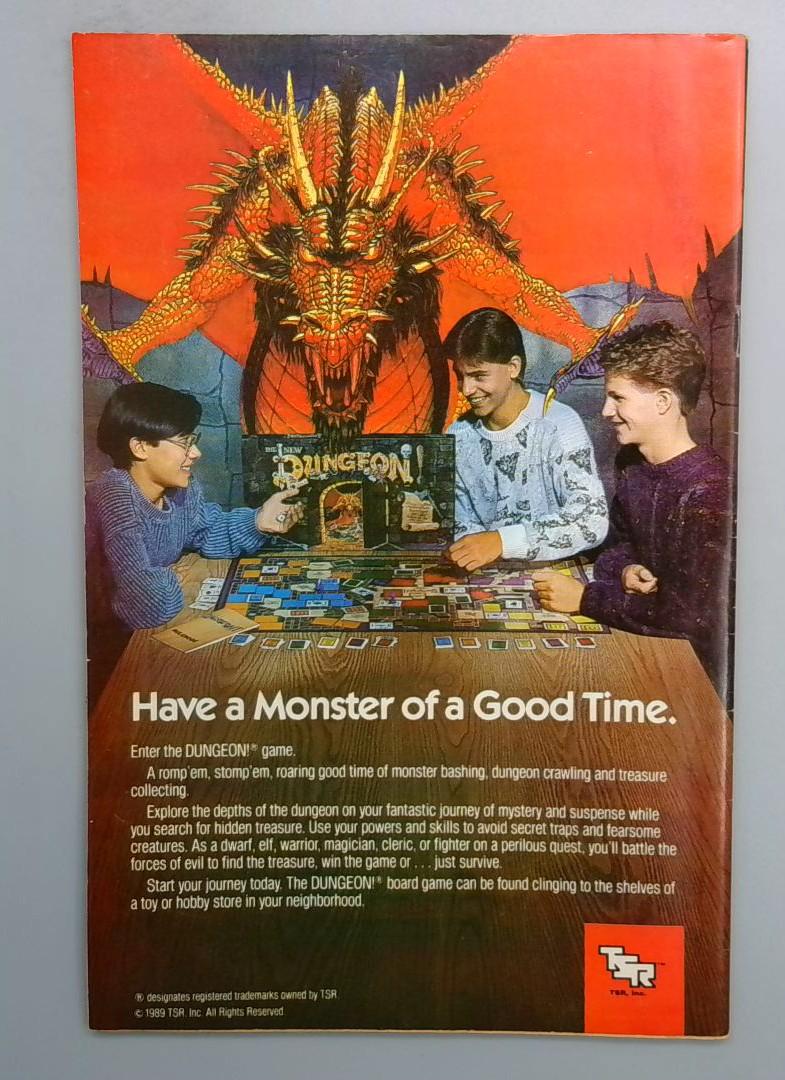 This copy also includes an insert advertisement featuring TSR's classic Dungeon! board game, promoting tabletop gaming to the comic's audience during the late 1980s.