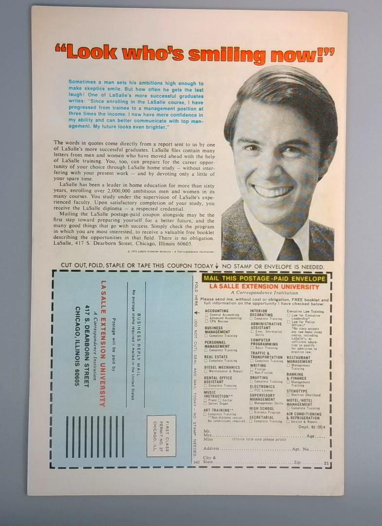This issue also contains a LaSalle Extension University advertisement on the back, offering home study courses and career training opportunities—a common educational insert in Marvel Comics of this period.