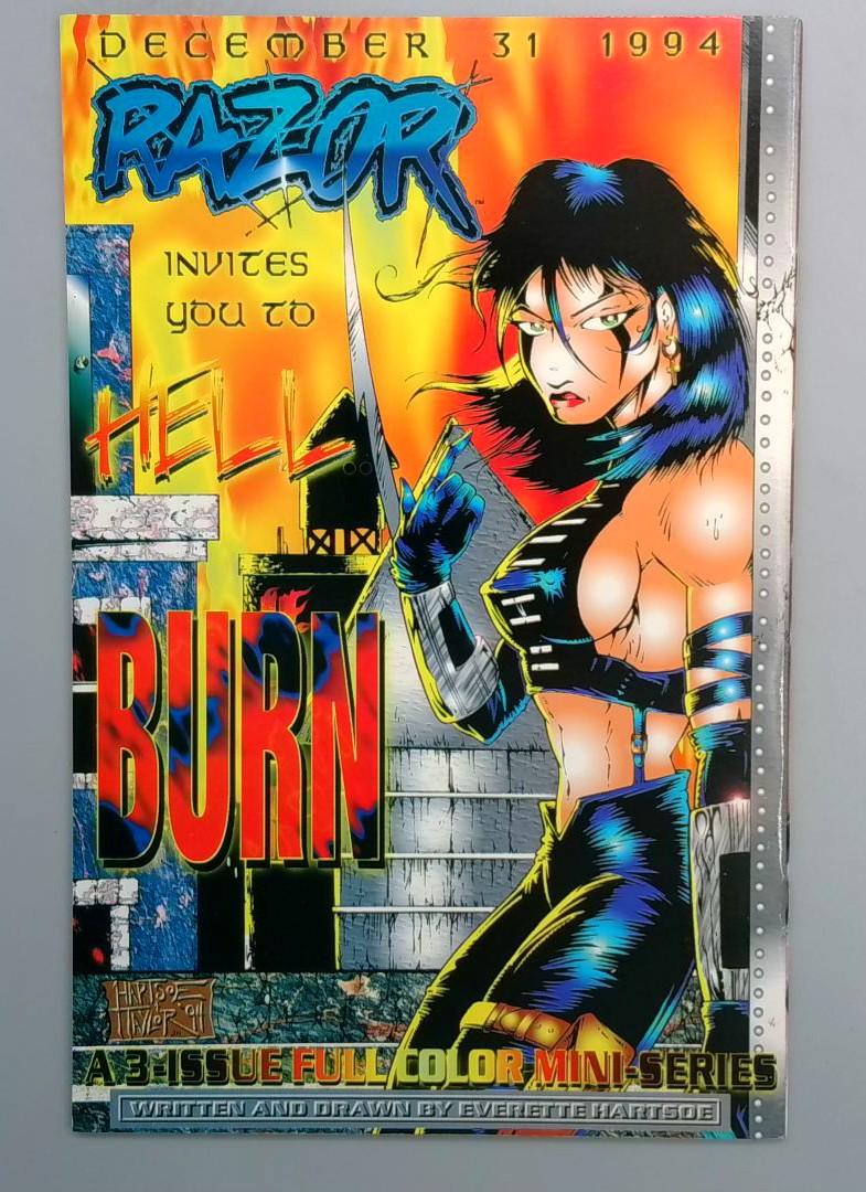 Razor Invites You to Hell Burn #1 - A full-color mini-series from December 31, 1994, written and drawn by Everette Hartsoe, this is a dynamic and visually striking installment in the Razor universe.