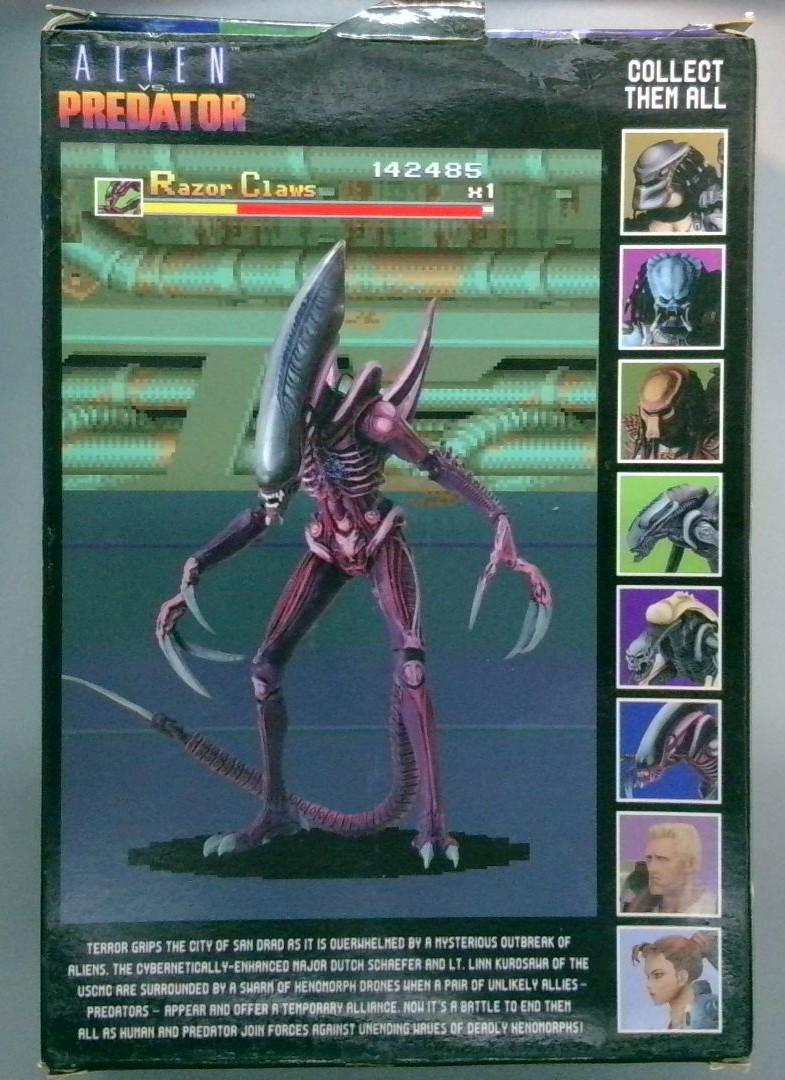 Keywords: Razor Claws Alien Alien vs Predator Kenner 1994 xenomorph figure articulated action figure collector toy biomechanoid alien vintage action figure purple and pink original packaging