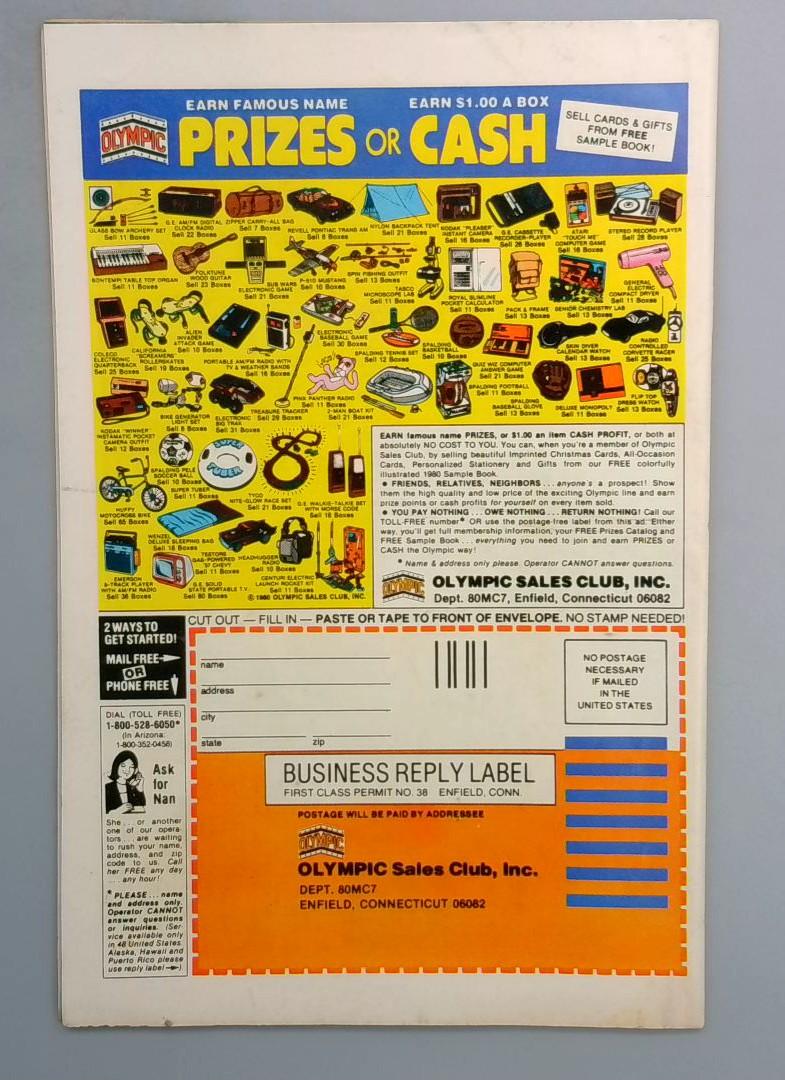 The issue also features a promotional banner for a Toy "R" Us Shopping Spree sweepstakes with a grand prize minimum value of $3000, and an Olympic Sales Club promotional insert on the back cover offering prizes and cash opportunities through mail-order sales.