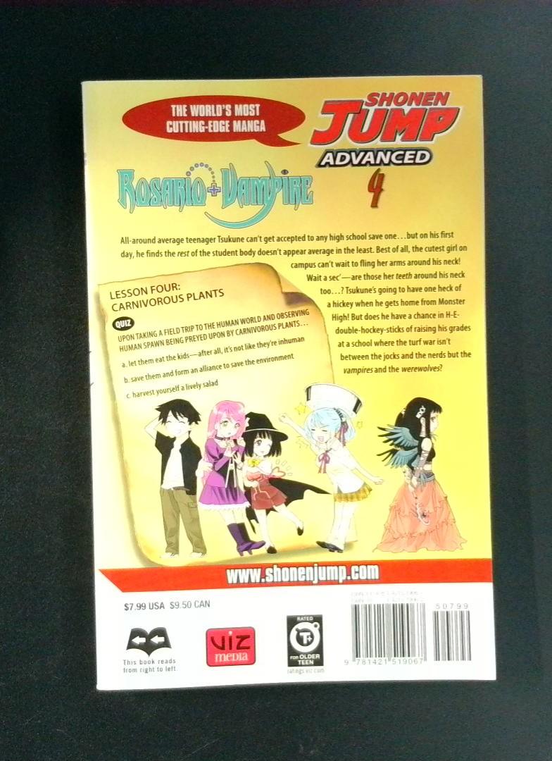 Rosario + Vampire Volume 4 - Published by Viz Media under the Shonen Jump Advanced imprint, this manga volume continues the supernatural romantic comedy series created by Akihisa Ikeda.