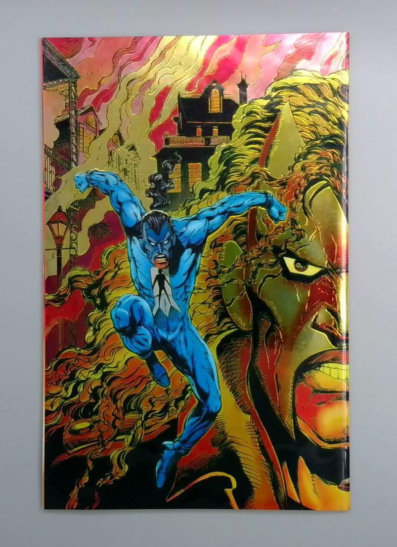 Keywords: Shadowman Valiant Comics comic book supernatural hero 1994 origin story urban landscape mystical elements striking artwork blue costume