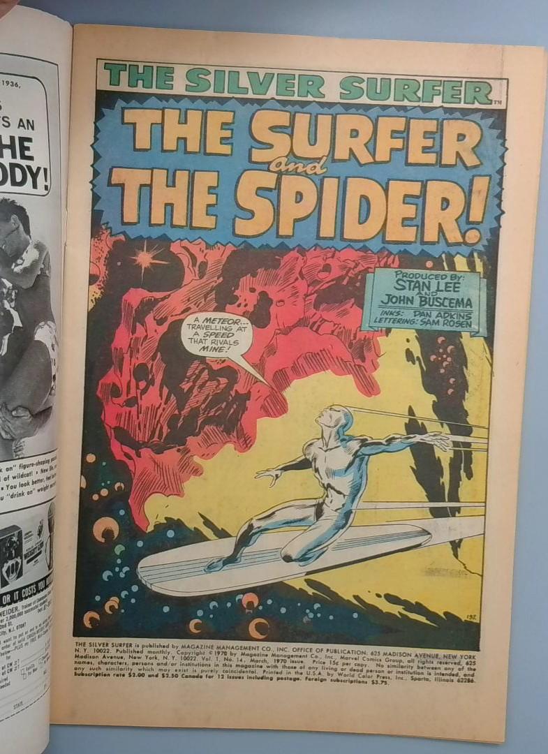 Keywords: Silver Surfer Spider-Man Marvel Comics 1969 comic book Sky-Rider of the Spaceways superhero vintage comics cosmic battle classic era