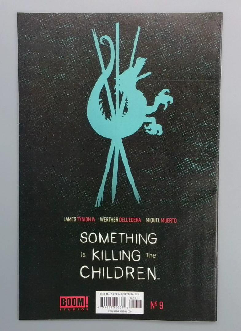 Something is Killing the Children #9 continues the dark and mysterious horror series from BOOM! Studios, following the monster-hunting protagonist as she confronts a terrifying threat targeting children. The issue, created by James Tynion IV, Werther Dell'Edera, and Miquel Muerto, delves deeper into the supernatural dangers lurking in a small town. The haunting artwork and intense storytelling explore themes of childhood trauma and supernatural menace, with a particularly unsettling cover depicting a patient in a hospital bed threatened by a monstrous presence.