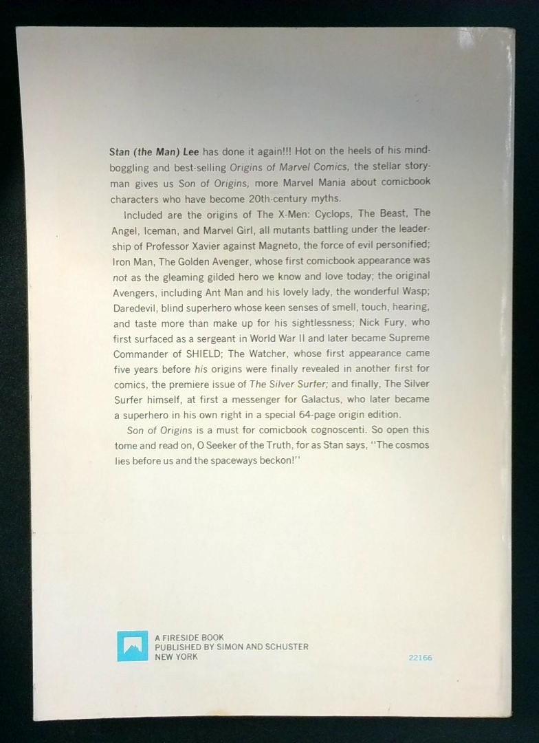Son of Origins of Marvel Comics - A Simon and Schuster Fireside Book collection by Stan Lee, featuring the origins of iconic Marvel characters.