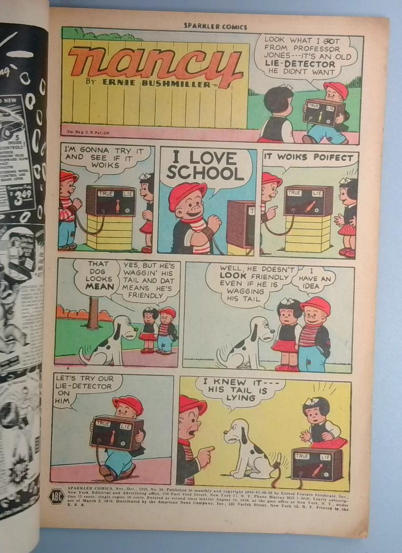 Keywords: Sparkler Comics Golden Age comics vintage comic book children's comics Ernie Bushmiller Nancy strip wholesome family values humorous education comic book collectibles classic comics