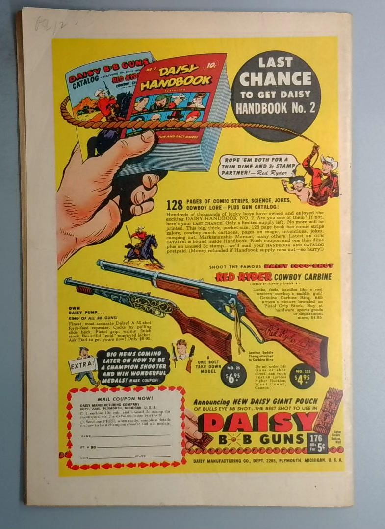 The issue also includes vintage advertising, including a full-page promotion for Daisy B-B guns and the Daisy Handbook, reflecting the product tie-ins common to comics of this era. Signed by artist Ernie Bushmiller on the cover.