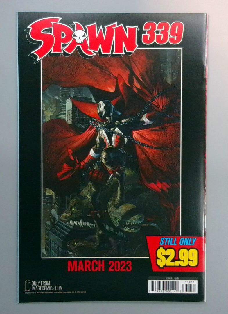 Spawn #339 continues the epic saga of Al Simmons as Spawn, delving into supernatural battles against demonic forces in a gritty urban hellscape. This issue features intense action sequences and explores themes of redemption and power struggles in the Image Comics universe. The cover art showcases a dynamic, red-hued portrait of Spawn by artist Jason Shawn Alexander, highlighting his iconic cape and chains in a striking watercolor style.